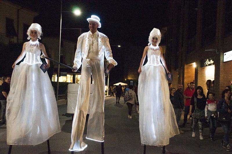 Spettacolo itinerante con trampoli costumi a led e musica dal vivo