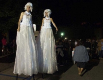 Uno spettacolo itinerante che piomba all'improvviso per le vie della città, un gruppo di angeli in frack bianchi e trampoli seguiti da una macchina schenica musicale animerà grandi e piccini.
